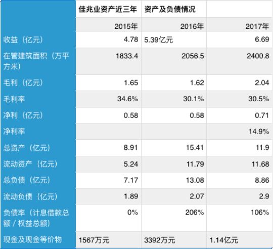 但与不少同行类似的是,在规模扩大的同时,佳兆业物业也有着负债率偏高的问题,截至2017年12月底,其总负债8.86亿元,负债率虽有大幅下降,仍达106%。