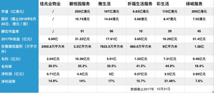 包括彩生活、碧桂园、雅居乐、绿城、祈福生活服务在内,佳兆业物业是第六家赴港上市的内地房企分拆物业公司,来得不算早,优势也并不明显。