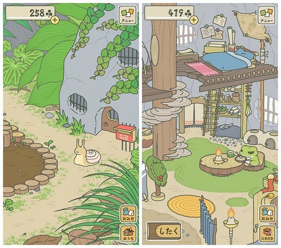 日本游戏开发商HitPoint Inc开发的佛系宠物养成手游《旅行青蛙》游戏界面