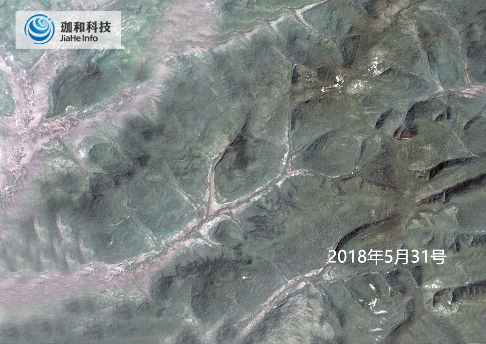 2018年6月,大兴安岭森林火灾,通过实时影像的前后监测,在大火熄灭当天测算出受灾面积