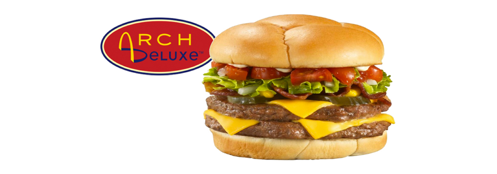麦当劳汉堡,配有奶酪、生菜、洋葱、西红柿、番茄酱和蛋黄酱的等等。专为成年人设计,但从来没有找到受众(当时巨无霸更便宜)。