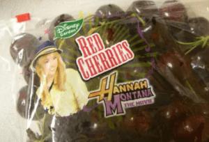 2009年,迪斯尼试图利用麦莉·塞勒斯(Miley Cyrus)的人气,用汉娜·蒙塔纳(Hannah Montana)的角色来给水果打上品牌。出于某种原因,公司选择了樱桃。在这个想法被新闻报道称之为不合适和不好的想法后,产品很快就被废弃了。