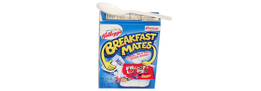 麦片、牛奶和勺子装在一个盒子里,不需要冷藏。这款产品的定位是面向儿童的简单多合一早餐,但它失败了,原因是小孩子不喜欢这个包装。