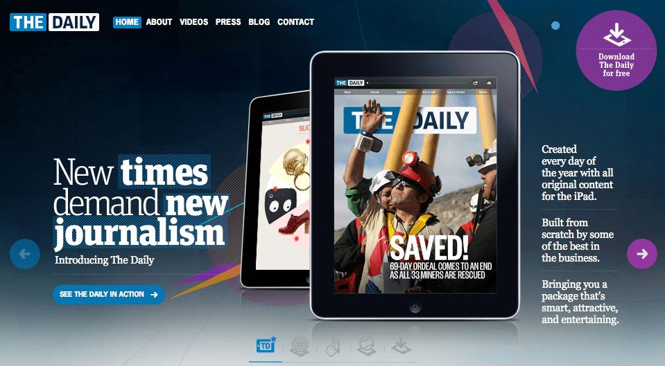 传媒大亨鲁珀特·默多克(Rupert Murdoch)认为,他可以利用日益高涨的平板电脑热潮,推出一份只在平板电脑上出售的报纸。在向该项目投入近3000万美元后,NewsCorp在2011年2月推出The Daily。这份价值99美分的虚拟报纸最初只在iPad上发行,在用户中没有多大吸引力,最终扩展到Kindle和其他平板电脑。但不到两年后,The Daily还是被关闭了。