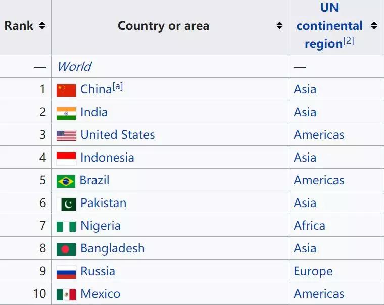 根据联合国人口排名,世界人口最多的10个国家中,排前四的中国、印度、美国、印尼均无缘世界杯,巴基斯坦和孟加拉也成为南亚的“难兄难弟”。