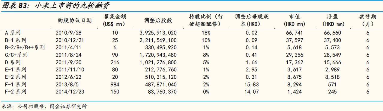 对于小米IPO后的股价表现,唐川预计,在上市6个月后将面临早期VC和PE股东减持的巨大压力。这是因为小米在历史上共有九轮优先股融资,合计融资金额达15.8亿美元。