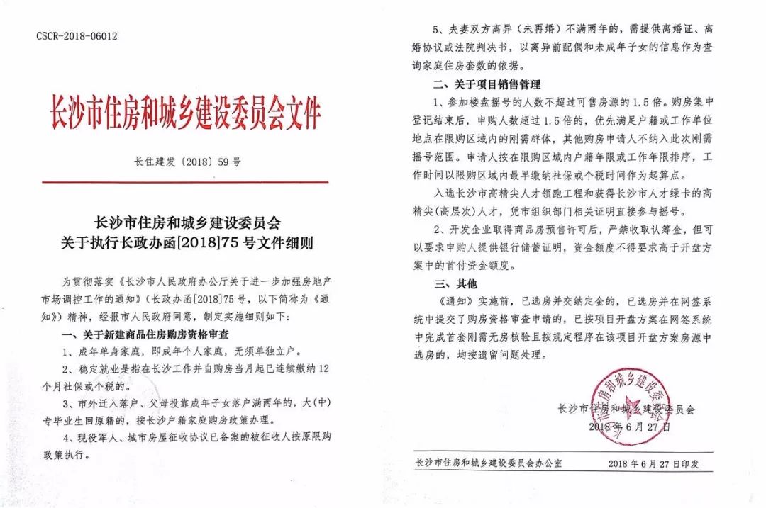 长沙在继6月25日发布史上最严调控升级之后,于6月28日再次补发升级细则。