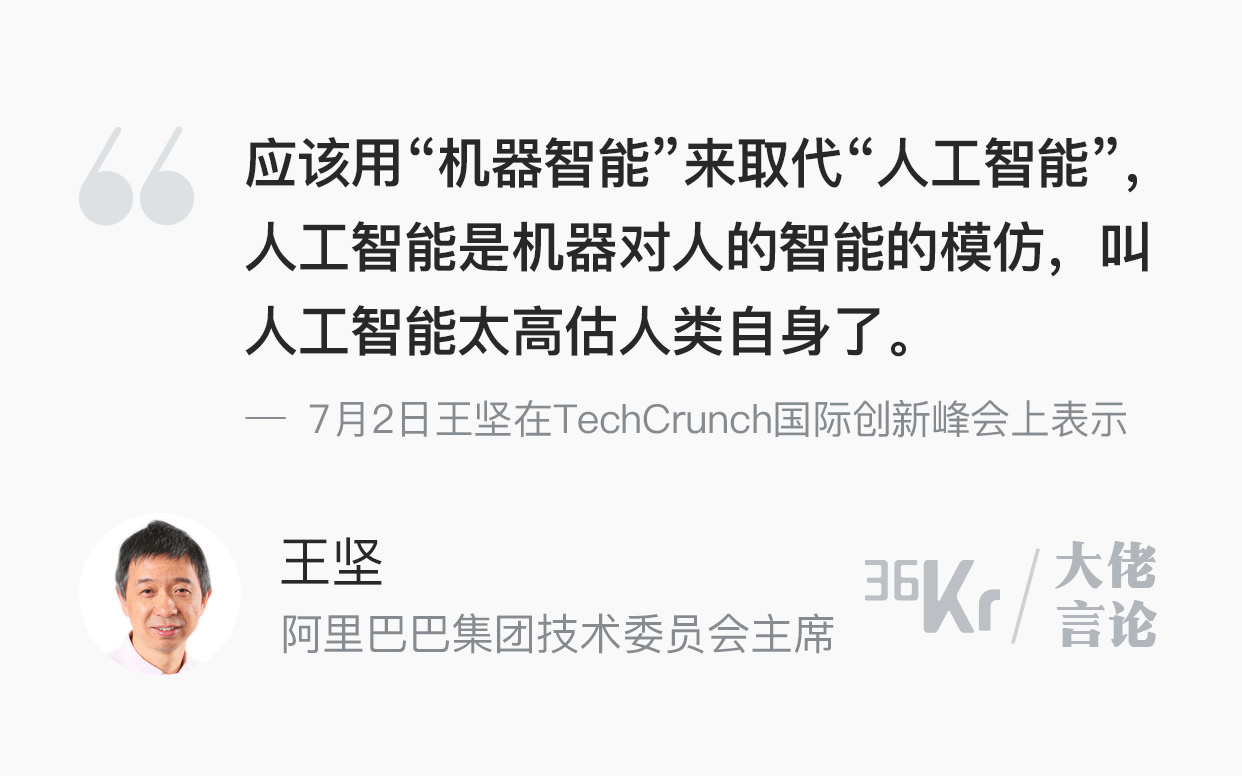 7月2日,阿里巴巴集团技术委员会主席、阿里云创始人王坚在TechCrunch国际创新峰会上谈到了机器智能和人工智能的差异。