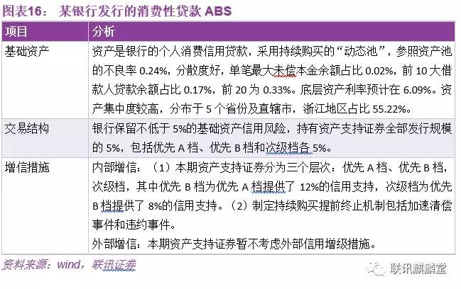 发行机构主要是股份制银行、城商行和农商行,我们以某城商行发行的个人消费性贷款ABS为例,按照基础资产、交易结构和增信措施几个方面来进行分析。