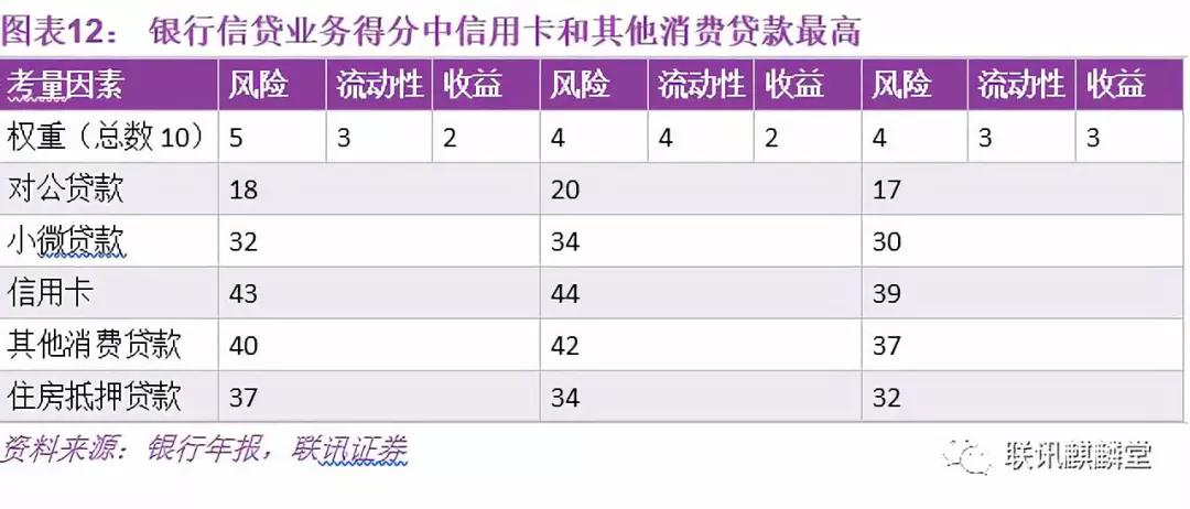 综上来看,银行信贷业务的配置顺序是:信用卡>其他消费贷款>住房抵押贷款/小微贷款>对公贷款。当然这是从风险、流动性和收益的角度上考虑的,没有考虑成本问题,正常情况下银行重视对公主要是有成本优势,因为相比零售业务的小额,同样一套流程和人员参与下,对公可以完成的业务量是远远超过零售和小微的。