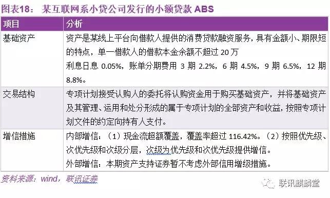 互联网系小贷公司是近年来发展势头非常迅猛的一种消费信贷ABS,根据不完全统计,目前尚处存续期的消费信用ABS中,互联网系有94个,平均规模25亿,以某互联网小贷公司的小额贷款ABS为例: