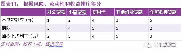我们给风险、流动性和收益这三个因素分别赋权,计算出各种信贷资产的最终得分,如下: