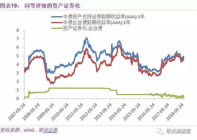 从收益上来看:资产证券化是高于其他一般债券的收益的,所以投资者配置资产证券化有助于提升收益率,近来随着资产证券化的发展,息差有所下降,大概在0.1%左右。