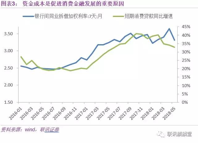 银行“躺着赚钱的日子”一去不复返,急需既不违规,风险又小,同时维持高收益的盈利模式,这时候以小额、分散、利率高为特点的消费金融进入机构的视野,几乎与资金成本增长的同时,消费金融迅速发展起来,可见资金成本是促进消费金融发展的重要原因。