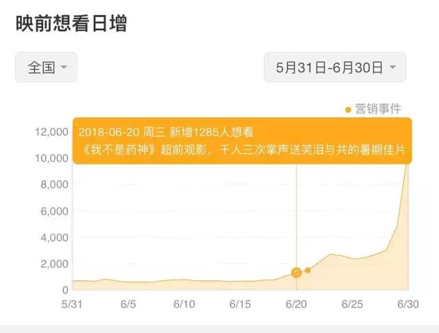 换句话说,越是敢于(提前)曝光的电影,越是质量过硬的电影。那么,《我不是药神》6月30日开头炮,周末连续两日的全国规模点映,接着又追加了7月3、4、5日三天工作日的点映时间。