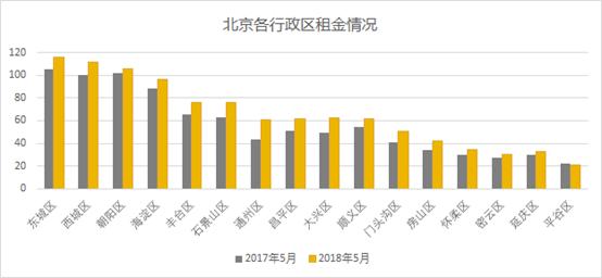 北京市住宅平均租金一直在保持持续增长,2018年5月,全市普通住宅平均租金已达到91元/㎡/月,与去年同期相比,每平米上涨了8.57%。
