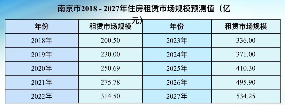 2018年南京住房租赁市场规模将超过200亿元,而至2027年,这一数字将增长至500多亿元。与此同时,2020-2027年,南京年均租赁住房供应量有望超过8.9万间,与同一时期年均预计6.6万间左右的住房租赁需求相比,将形成供大于求的趋势。
