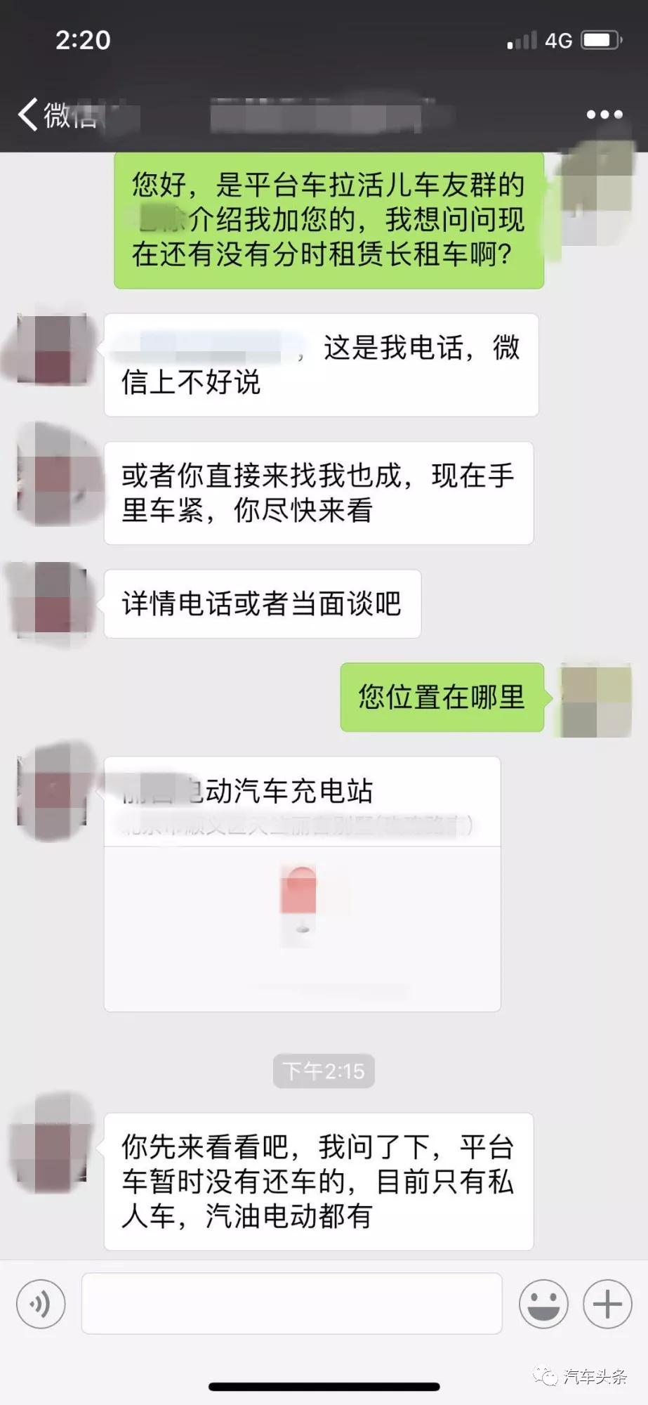 业务量可持续拓展。并不是一锤子买卖,张老板的业务量仍在不断扩展:“这样吧,你要是一定要租平台车,平台那边儿我还有空闲账号随时关注,要是有车了我肯定第一时间能租过来”。不仅是平台车,借助靠近充电站和租车点的优势,张老板随时可能接触到前来充电、还车的私家车主和平台车辆,而对于私人车主加以“年租小四万,两年车钱回本”的利诱,把车托付给黄牛党外租的车主时有出现。
