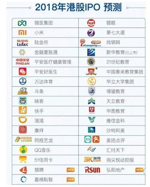 根据市场消息2018年将会赴港IPO的公司名单,实际以香港联交所发布为准: