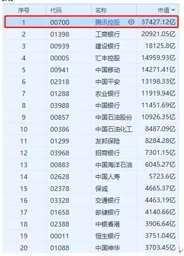 除腾讯以外,以金融、能源为主