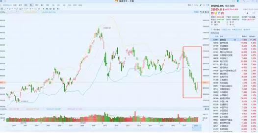 从今年2月份创下新高的33484点以来,恒生指数截止7月1日下跌13.53%。
