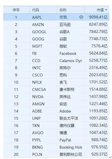 几乎全是互联网科技股