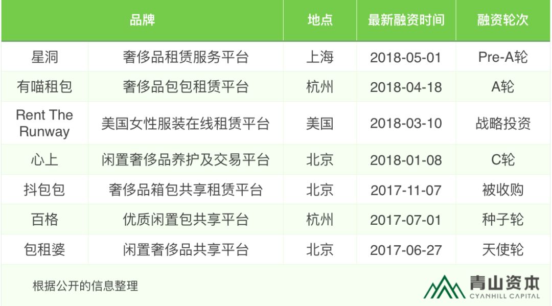 根据青山资本(ID:cyanhillvc)不完全统计的信息,过去一年时间,一系列以“共享奢侈品”为特性的平台相继获得融资,大有接棒共享经济之势,甚至断言,随着奢侈品共享平台的兴起,将给奢侈品市场带来又一轮冲击。