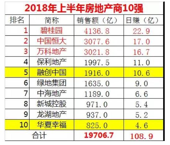 根据中国基金报的统计,从地产销售额来看,2018年上半年位列榜首的就是碧桂园,达到了4136.8亿元,平均日赚22.9亿元。碧桂园的大部分房产在三四线城市,正好是上半年热销的主要领域。
