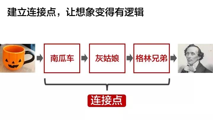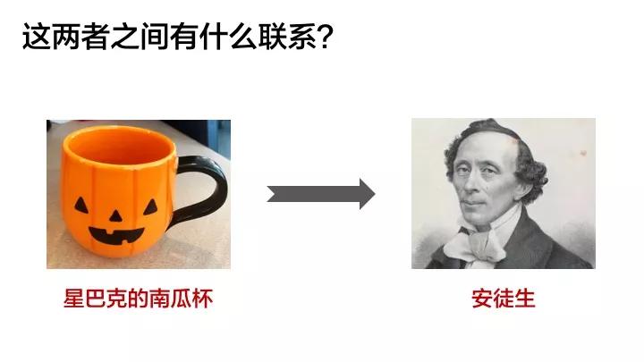 这是一个由事物A(南瓜杯)直接跳跃到事物B(安徒生)的例子。但是,这两者之间的内在联系是什么呢?
