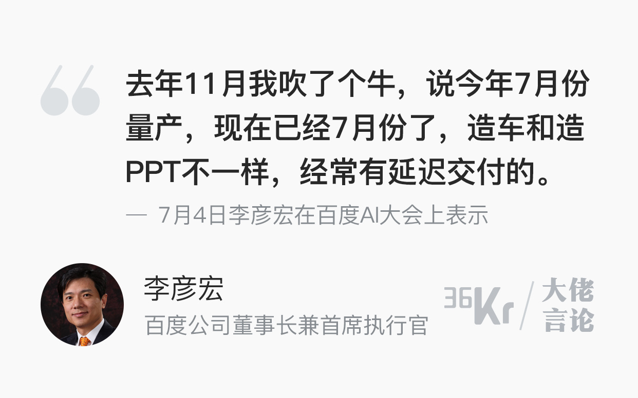 大佬言论 | 李彦宏:造车和造PPT不一样,经常有延迟交付的