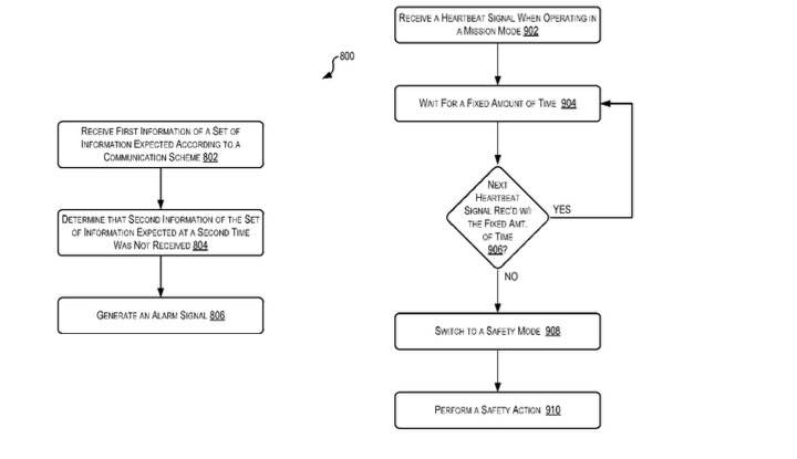 在这种安全操作条件下,无人机将执行“一个或多个预先编程的动作,旨在与控制系统重新建立通信,重新获得对无人机的控制,并/或将无人机降落在安全位置。”