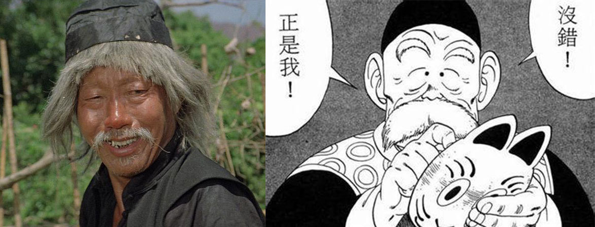 比如《醉拳》里教成龙醉拳的师傅,其造型就很像是《龙珠》里孙悟空的爷爷孙悟饭。