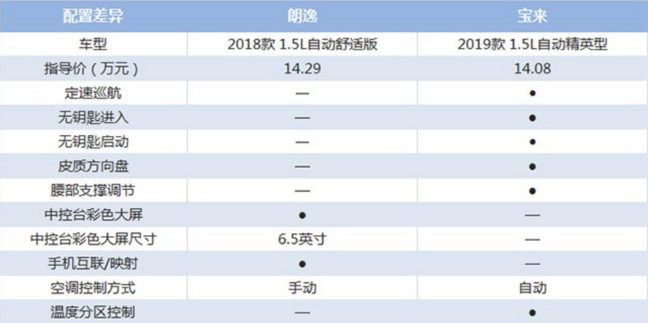 朗逸2018款1.5L自动舒适版(14.29万元)对比宝来2019款1.5L自动精英型(14.08万元)