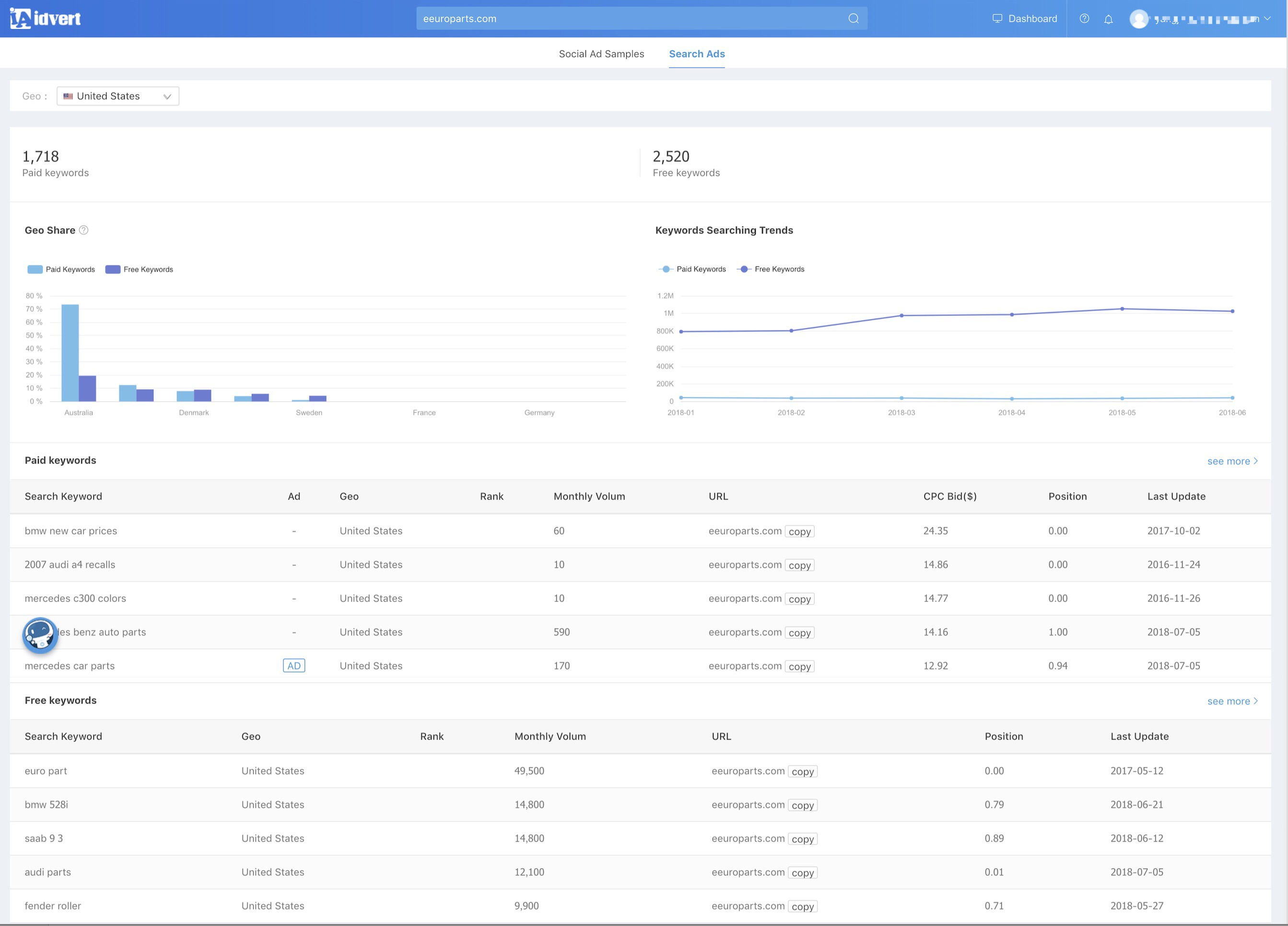艾瓦特目前侧重于电商与游戏领域,集中于欧美和东南亚地区;输入行业关键词,就能找到很多海外广告案例,精确分析到特定产品的人群画像、年龄分布、兴趣爱好等,帮助企业制定个性化海外市场开拓策略。艾瓦特团队此前服务过 600 多家企业,管理过的广告预算达到十几亿美元,因而广告模型积累以及广告行业经验也是该公司的重要壁垒之一。