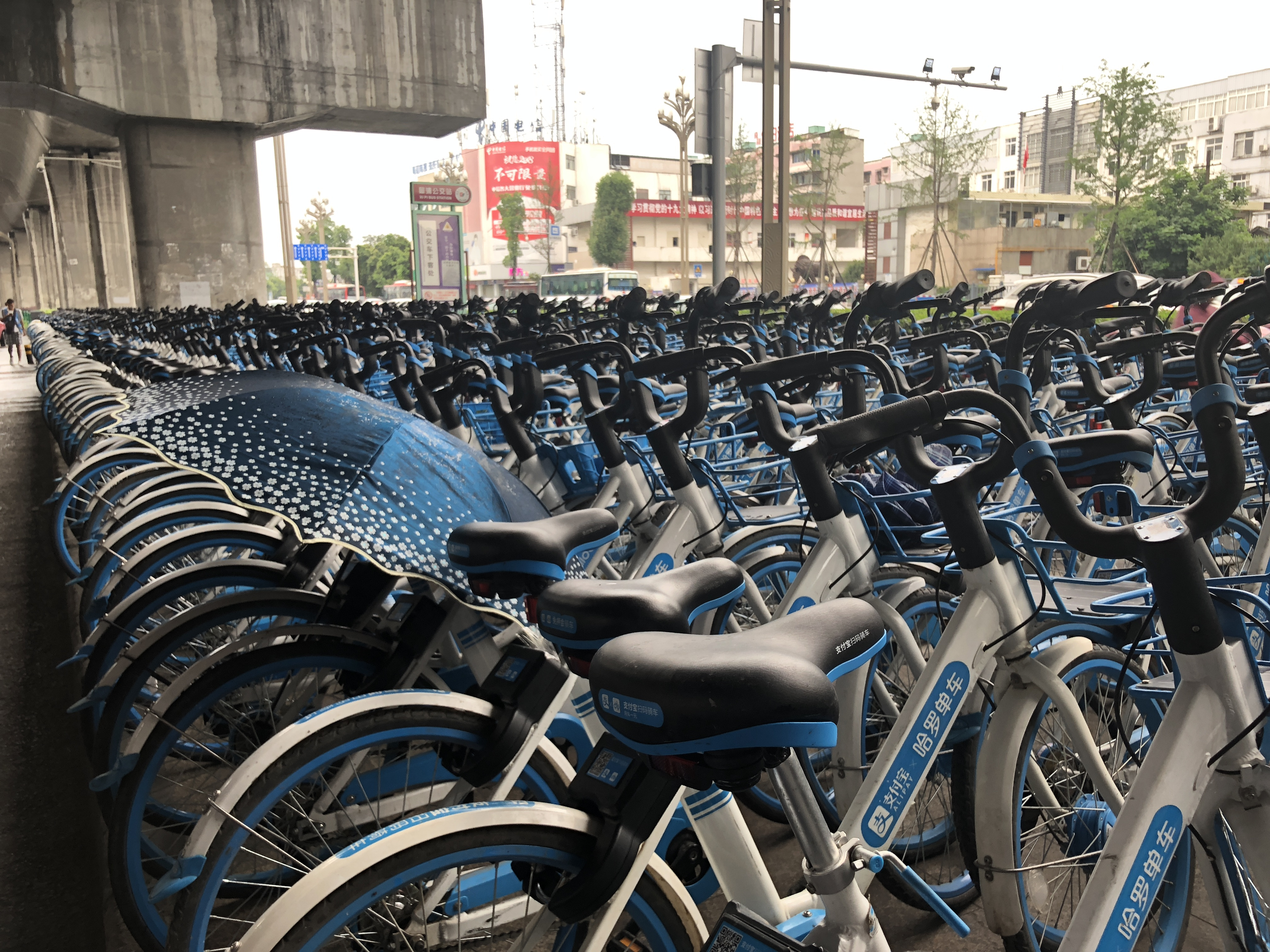 不过当地人对单车的需求依旧旺盛,尤其是一些交通枢纽。据哈罗单车成都车辆运营胡灿介绍,“犀浦地铁站平均每辆车每天被骑行15-20次,这里的峰值车辆数可以达到2000-3000辆。”