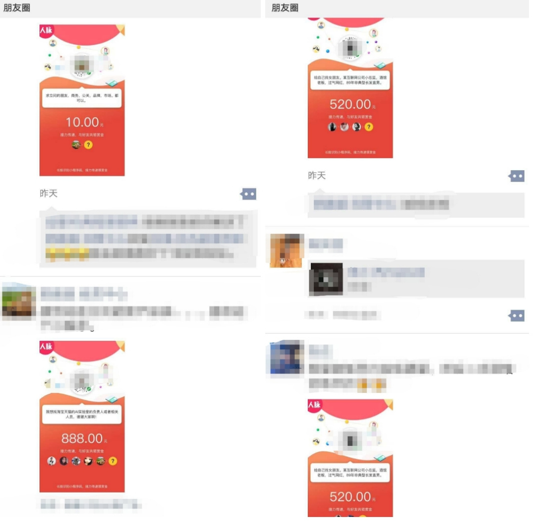 也就是说,「立问人脉」以传统的人找人需求刷屏朋友圈的巧妙逻辑在于,它为用户帮忙转发、消耗自己人脉这一行为的付出提供了对应的报酬,而报酬的金额多少则取决于用户的人脉质量。