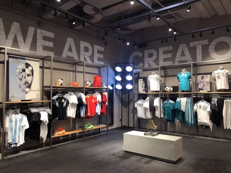世界杯开幕伊始,阿迪达斯位于北京三里屯的亚太品牌中心重新开幕。2000 多平方米的四层建筑中,梅西、厄齐尔、莫拉塔等一众球星的巨幅画像出现在显著位置。整个门店一层的大部分都被德国、阿根廷、西班牙队的比赛球衣、复古球衣占据。