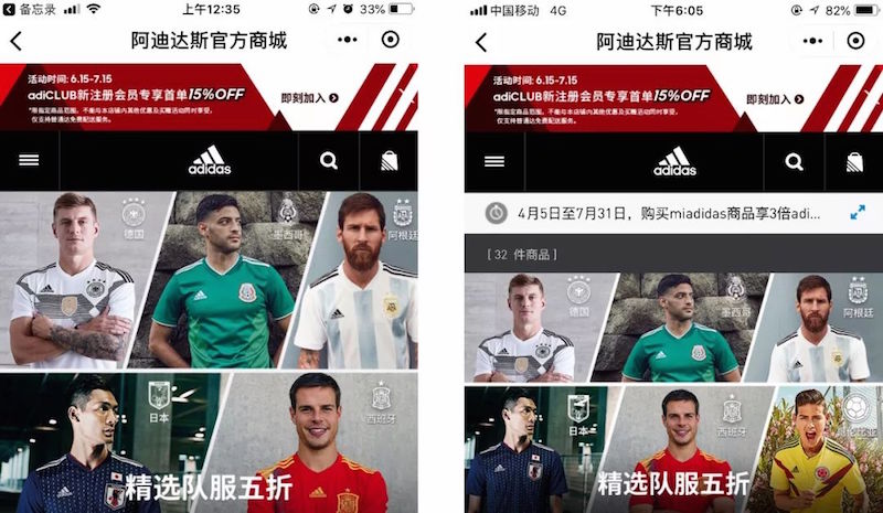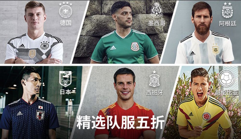 7 月 4 日凌晨,当哥伦比亚被英格兰淘汰出局后,在阿迪达斯的中国官方商城,南美劲旅的队服立马加入了“精选五折队服”行列。