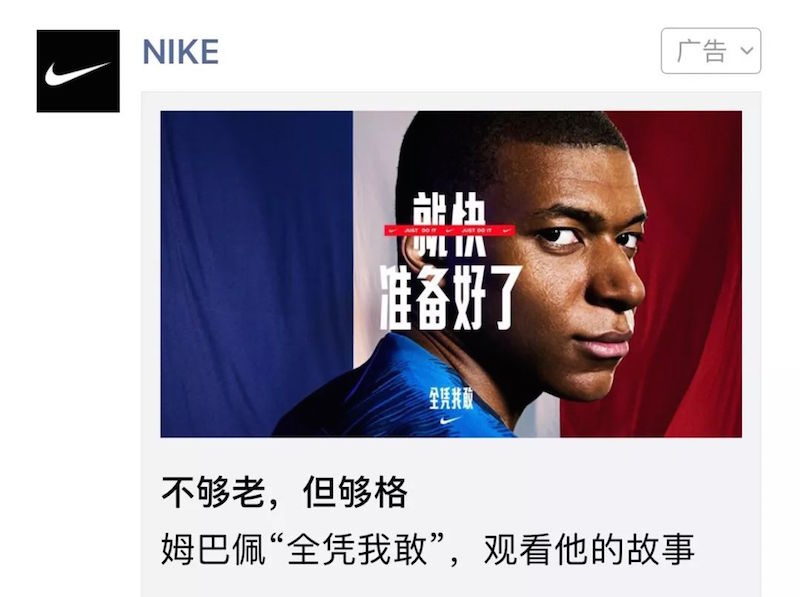 耐克在微信朋友圈投放的姆巴佩故事
