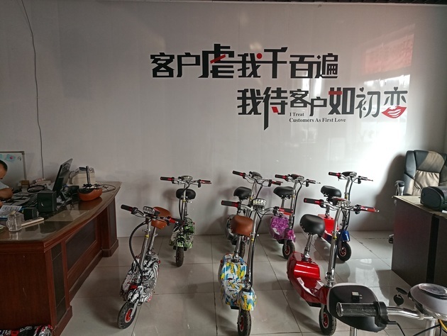 在王勇办公室的墙上,贴着公司文化宣传标语“客户虐我千百遍,我待客户如初恋”。王勇曾经的客户遍布全国各地,每年旺季时一个月能有5000多辆的销量,而现在每个月只能艰难维持不到1000辆。2017年10月,一间已经连续租了四年的厂房到期后,王勇选择了退租,并将自己手里另一间1600平方米的厂房也一同挂牌出租。