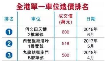 今年6月,位于香港九龙区天铸公寓大楼的一个车位以600万港元(76.5万美元)的交易价格,创全港车位新高纪录。较去年英皇国际西营盘“维港峰”车位的518万港元成交记录高出15.8%。