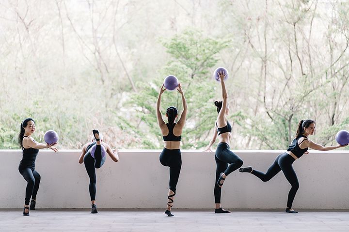 Barre是以芭蕾为基础的训练,但减去了芭蕾舞的多旋转脚尖动作,对于健身用户来说练习难度大大降低。同时结合普拉提动作,比普拉提更为柔软灵活,比瑜伽力度更大。用到的工具除了芭蕾把杆外,还有弹力球、弹力绳和瑜伽绳等锻炼臂力,塑形效果不弱于芭蕾。