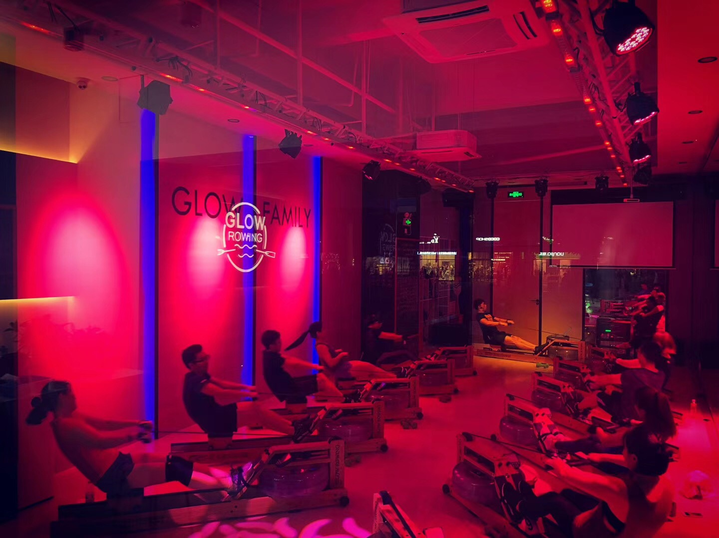 划船机也遵照了类似的路线,各大以Rowing命名的精品工作室正在各一线城市试验。用户集体在排列整齐的划船机上竞赛,结合灯光、音乐和其他动作,用45分钟时间,满足用户愉悦性体验的健身需求。