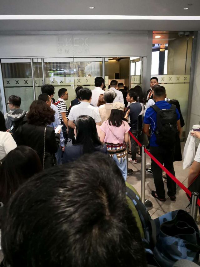 七点刚过,位于中环的香港交易所门口就排起了长队。这也是港交所敲钟大厅重新装修之后第一次出现如此火爆的场景。一位现场的工作人员对腾讯《棱镜》透露,现场预计已超过700人,其中包括200多名小米集团员工及其家属等。