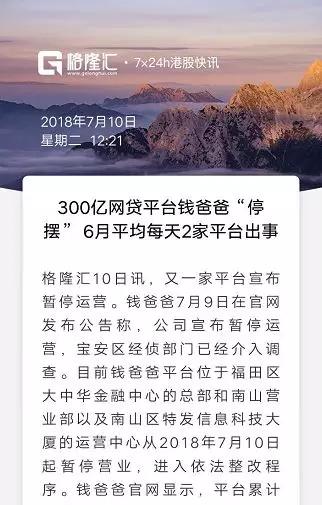 终于,南京、上海、杭州P2P的雷也传导至深圳。7月9日,钱爸爸在官网发布公告称,公司暂停运营,宝安区经侦部门已经介入调查,位于福田区的钱爸爸平台进入依法整改程序。钱爸爸成立于2013年1月15日,累计交易额高达325亿元,累计交易次数超75万笔,是近期爆掉的大雷之一。