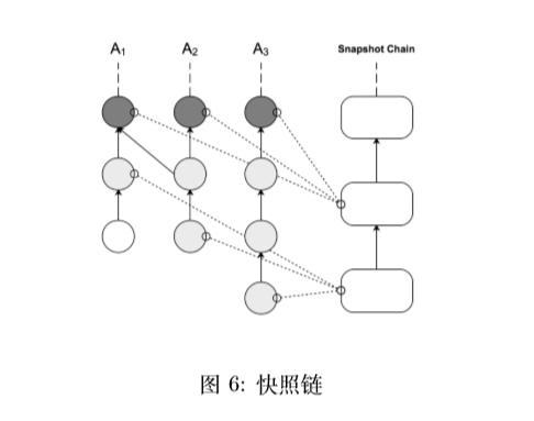 为了弥补这些缺陷,Vite引入了快照链结构。快照链每一秒钟对整个账本的末尾拍一个“快照”,然后将其写入快照块,后一个快照块引用前一个块的hash,构成 一个区块链结构。每一快照块存储的状态包括:账户的余额、合约状态的 Merkle root,每个账户链中最后一个交易的 hash。DAG账本可能发生分叉,但全局状态以被写入快照链的为准,写入快照意味着交易被确认。如果快照链本身发生分叉,节点会选择更长的快照链达成共识。