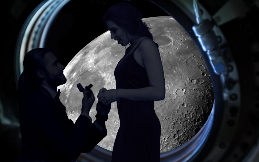 看中太空旅行商机的不只航空公司,最近法国一家求婚策划公司 Apoteo Surprise 就推出了一项「月球求婚」计划,从 2020 年开始情侣们就有望在距离 384400 公里的月球表面向心仪的对象求婚了。