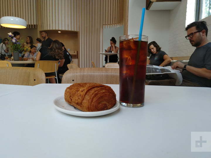 早上我们在布鲁克林喝咖啡,用Moto G6和诺基亚6.1拍照,看看谁的照片更像Instagram食物照,首先从咖啡和面包开始。