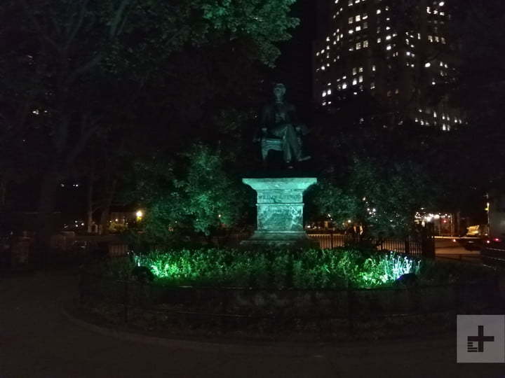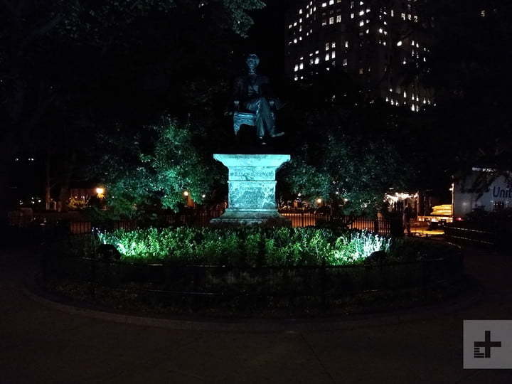 最后我们给William E. Seward雕像拍照,他是纽约前州长,雕像放在麦迪逊广场公园入口处。在低光环境下,两台手机的表现差不多,只是Moto G6整体效果好一些。如果你细细查看G6照片,就会发现雕像下半部分细节更丰富,诺基亚6.1照片稍差,细节模糊。在Moto G6照片中,雕像旁边树的细节要清晰很多,背景中的建筑也是一样的。但是雕像的基座有点曝光过度。