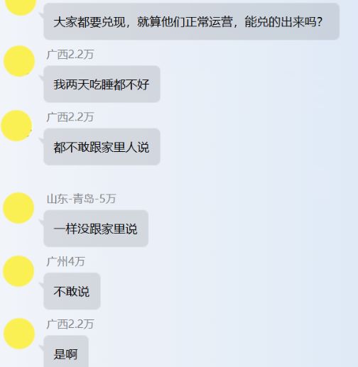 和李锐不同,来自辽宁的老胡属于“激进”型投资者,虽然近期在一个爆雷的平台赔掉十多万,但他并不沮丧,在众人叹息的维权群里,老胡一方面大骂平台负责人“不得好死”,一方面还在喊“继续干”。